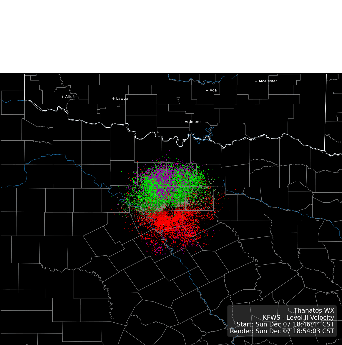 - A measure of the radial component of the wind either toward the radar (negative values) or away from the radar (positive values). Cool colors (green) represent negative values and warm colors (red) represent positive values.