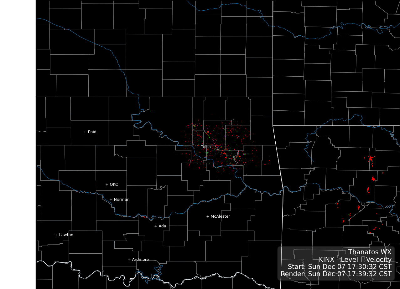 - A measure of the radial component of the wind either toward the radar (negative values) or away from the radar (positive values). Cool colors (green) represent negative values and warm colors (red) represent positive values.